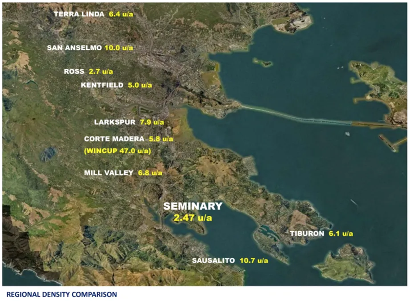 At 2.47 units per acre, it would be among the lowest density projects in the area. Even the neighborhoods immediately adjacent to the project range from 3.2 units per acre to 17.7 units per acre, while others in the county go up to 47 units per acre, according to the development team.