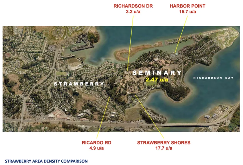 Against this backdrop, Marin County will decide on Monday whether to allow the construction of 304 units in unincorporated county land outside Strawberry. The project, which would replace 211 units currently on-site and provide 61 income-restricted affordable units, is (no surprise) being fought by nearby residents and local columnists who fear “over development.”